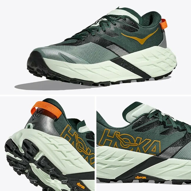新しいSCFミッドソールによりエネルギーリターンが強化され、SPEEDGOAT(スピードゴート)はかつてないほど反発性が向上しました。シリーズを通じて得た信頼性の高いフィット感とグリップ力はそのままに、ヒールカラーの改良で快適性を追求、シューズ内への砂利の侵入を防ぐゲイターに対応する仕様をプラス。