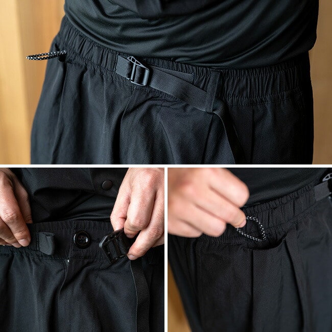 ウエストにはゴムが入っていてウエスト最大100cmまで入りますが、ベルトも入っているので細身の方にもフィットしやすい仕様となっています。
