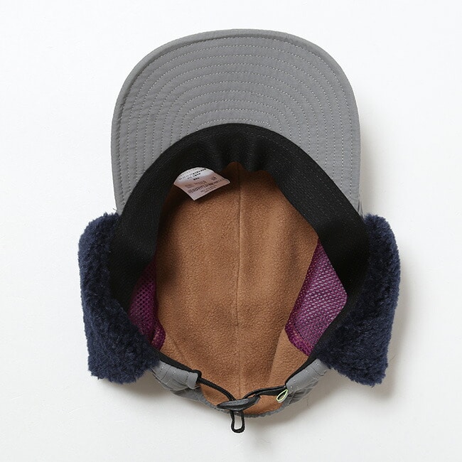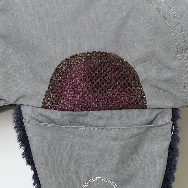 肌触りの良いファーとフリース裏地が防寒性を強化。耳当てを下げるとメッシュ部分が露出し、通気性を確保できる仕様に。