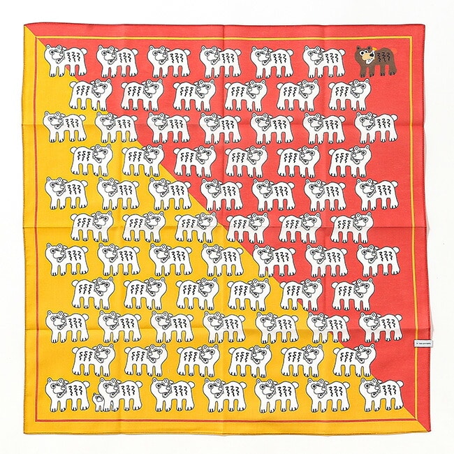 斜めに配色を切り替えたデザインが特徴のバンダナ