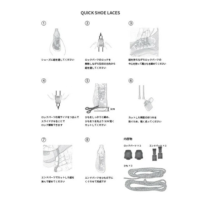 付属のアタッチメントで素早くサイズの調整が可能。靴紐がほどけにくくストレスの軽減に繋がります。