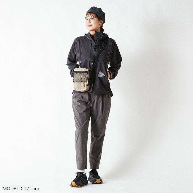 裏地には銀イオン配合の抗菌防臭・制菌メッシュを使用し、汗抜けを重視した設計でムレを軽減。シワになりにくく、ポケットに畳んで持ち運べるため、トレイルや遠征にも最適。