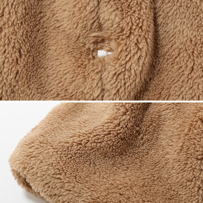 ・表地にフリース、裏地には毛足の長いボアを使用し、高い保温性を確保。