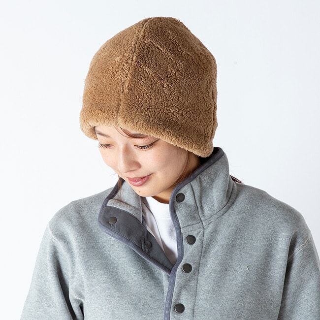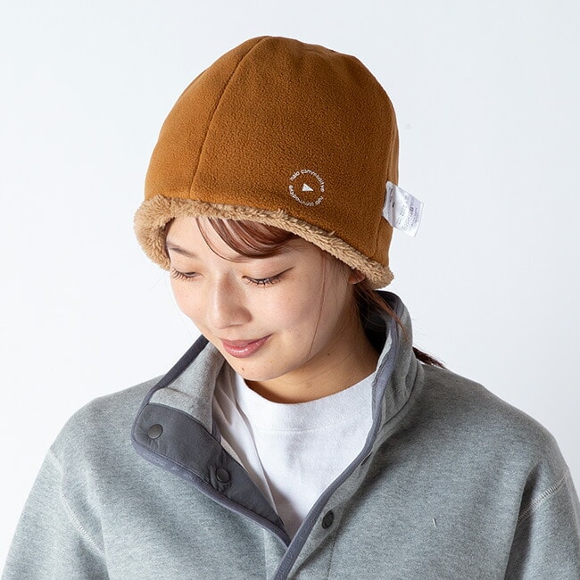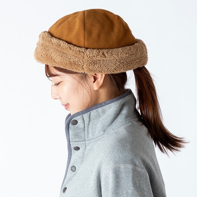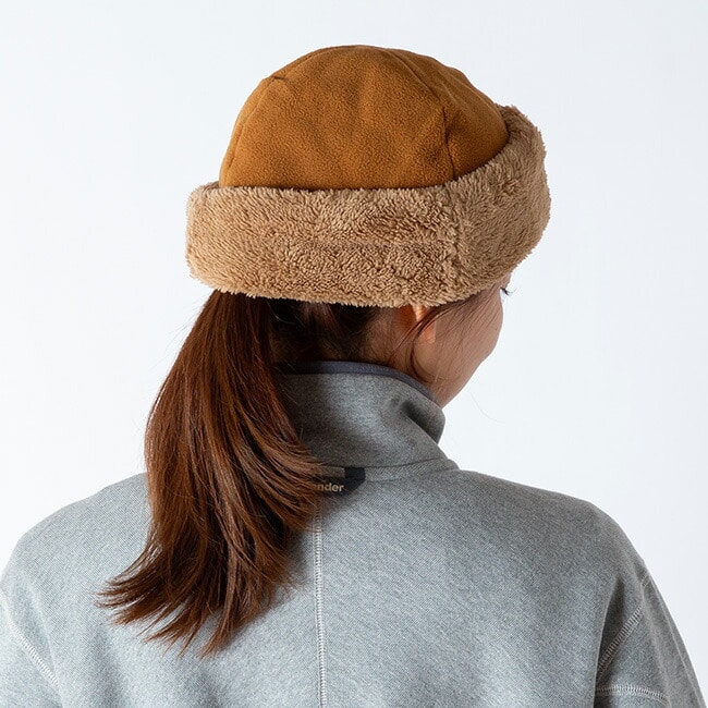 折り返しデザインは、下げることで耳まで覆え、防寒性をさらに向上。柔らかな素材感と機能性を兼ね備え、冬のアウトドアやタウンユースに活躍するキャップ。
