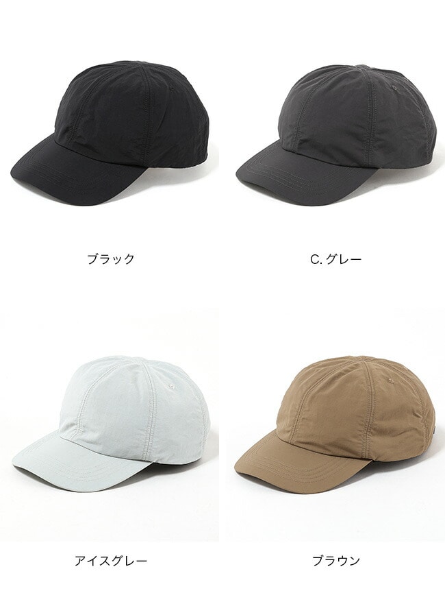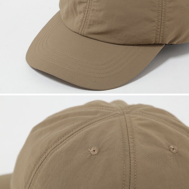 撥水性に優れ、天候を問わずデイリーに使いやすい仕様です。程よい深さのクラウンと7cmのカーブバイザーが、顔まわりをすっきり見せるバランスに。
