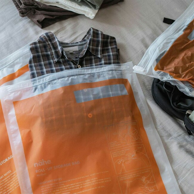 旅行はもちろん、ご自宅でも収納に便利なnahe(ネーエ)の衣類用圧縮袋。