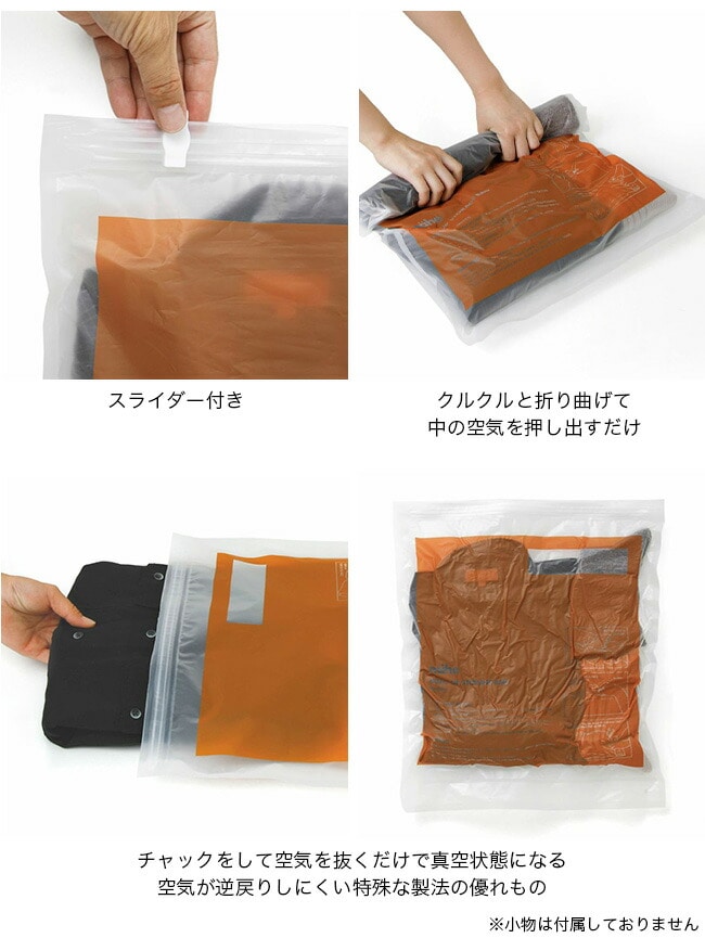 中が見えづらく手ざわりの良いマット素材です。チャックをして空気を抜くだけで真空状態になる、空気が逆戻りしにくい特殊な製法の優れもの。
