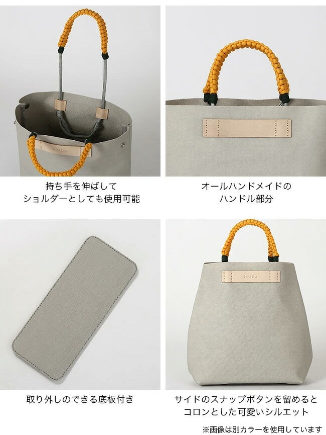 ストラップはカナダの漁師や船乗りの使用する紐の結び方を駆使し、ハンドルの長さを自由自在に変更できるようデザイン。ハンドでもショルダーでも、お好みのスタイルでお楽しみいただけます。
