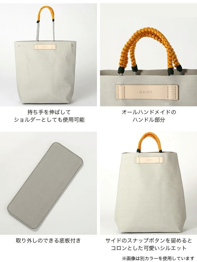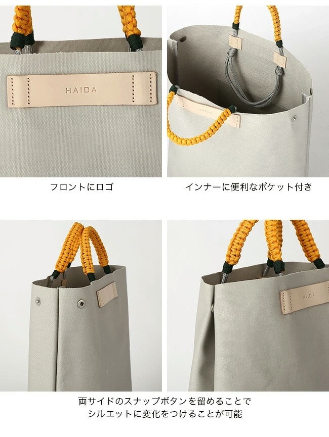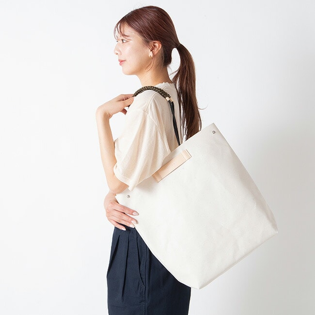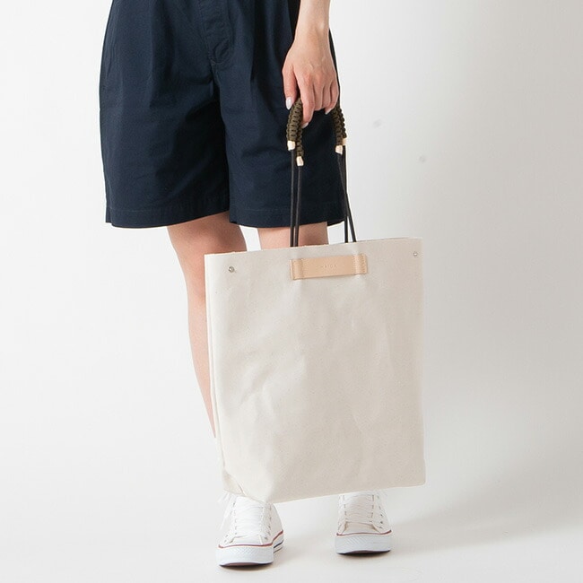 ストラップはカナダの漁師や船乗りの使用する紐の結び方を駆使し、ハンドルの長さを自由自在に変更できるようデザイン。ハンドでもショルダーでも、お好みのスタイルでお楽しみいただけます。