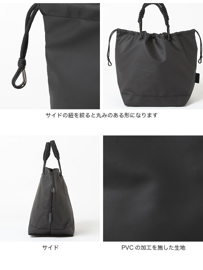 両サイドに付いている紐を引っ張れば巾着としても使うことができます。