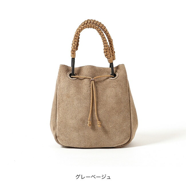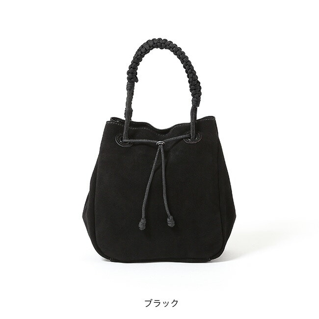一つずつ編まれたハンドルが印象的な巾着タイプ