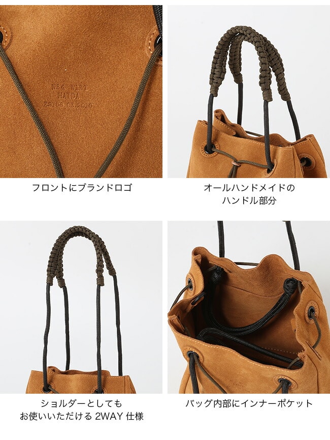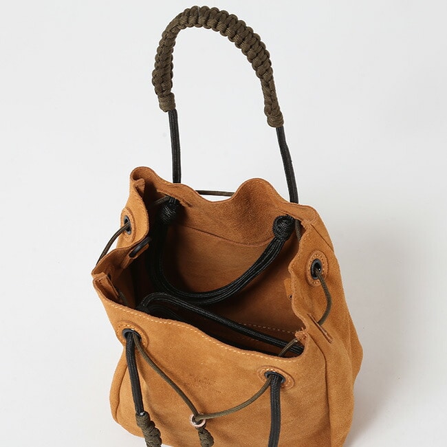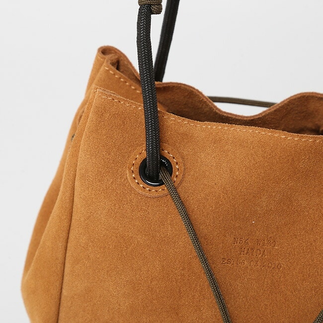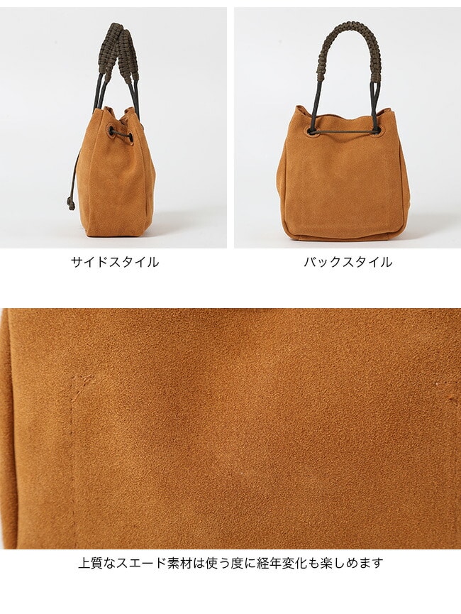 上質なスエード素材は使う度に経年変化も楽しめます。前胴部のドローコードでサイズを絞る事も可能です。