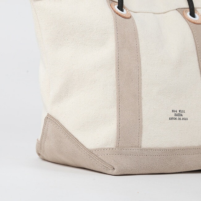 ナチュラルなキャンバス生地とスエードの組み合わせが魅力のトートバッグ。デイリーのお出かけやちょっとした旅行にも最適です。