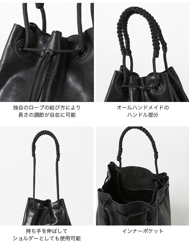 オールハンドメイドのハンドル部分がアクセントとして効いています。独自のロープの結び方によりハンドルの調節が自在に可能です。