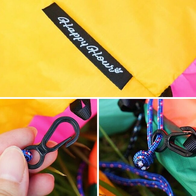 コードの先にはフックが付いていて、サックの底につければ肩掛け(小柄な方なら斜め掛けも可能)ができるので、温泉にも便利なアイテムです。