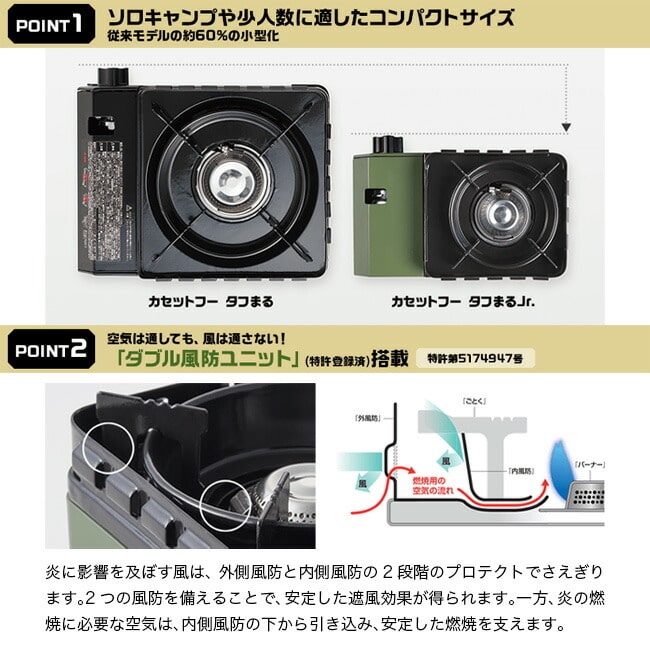 ■連続燃焼時間:約102分(イワタニカセットガス/パワーゴールド使用時)約45分(カセットガスジュニア使用時) (気温20?25℃のとき強火連続燃焼にてカセットボンベを使い切るまでの実測値)