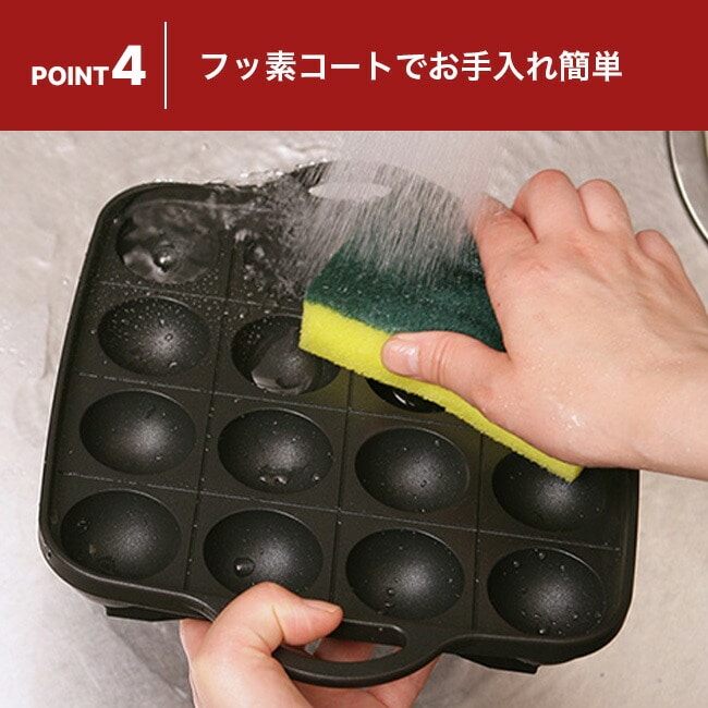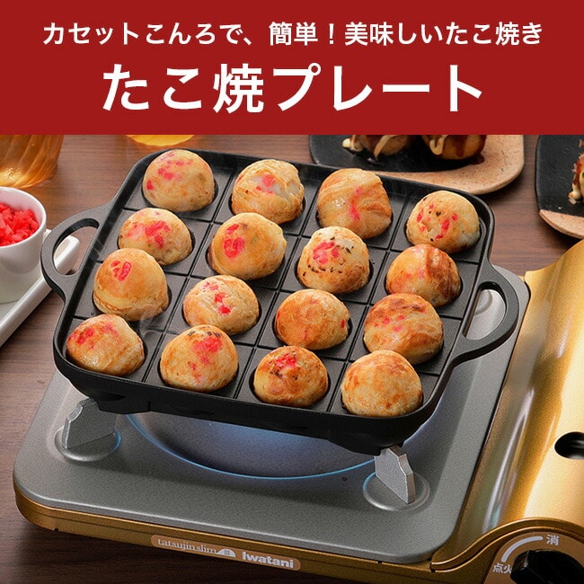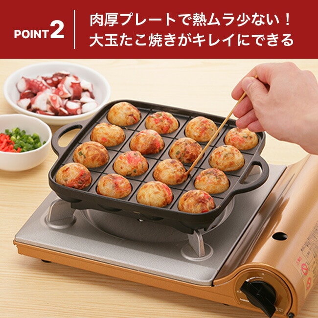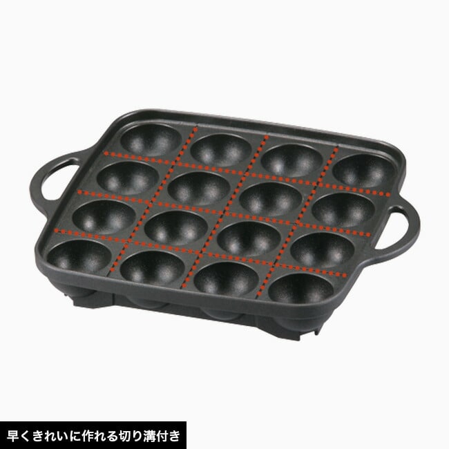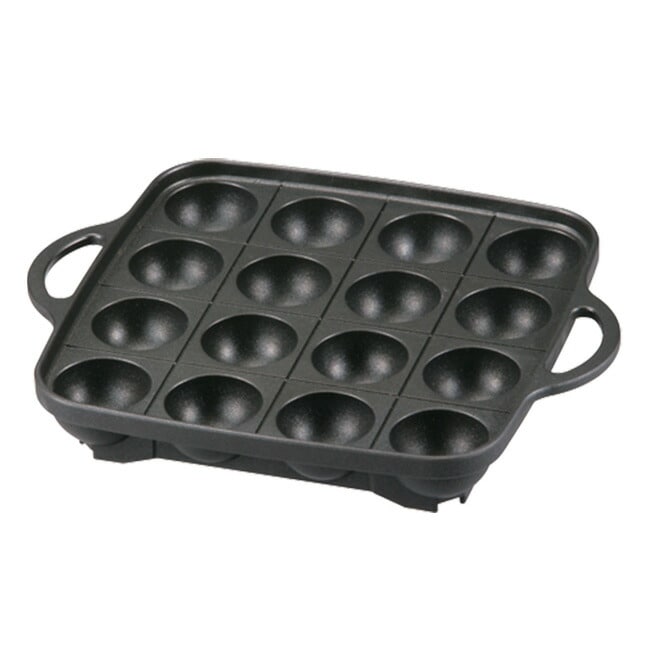 フッ素加工でこげつきにくい、ガスコンロ用たこ焼きプレート。