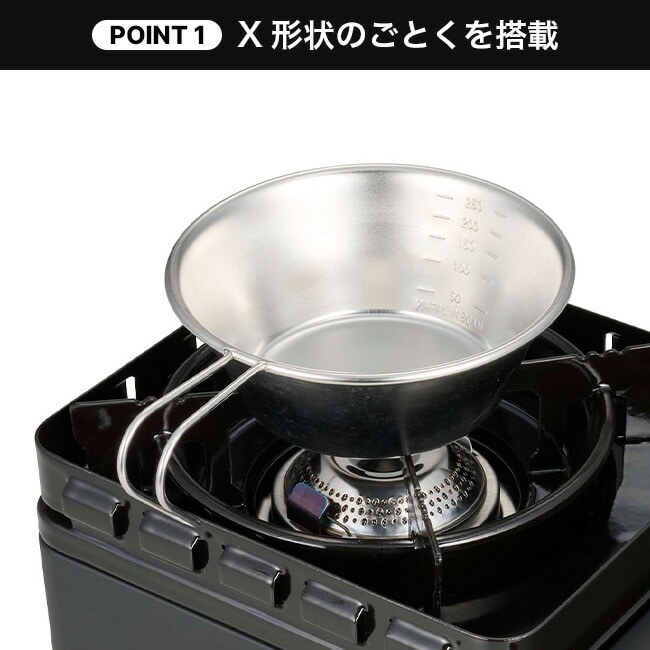 新型の「X」 形状のごとくを搭載することで、底の直径が短いシェラカップも安定して乗せることができます。