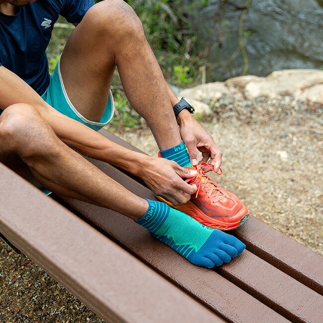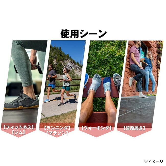 ランシリーズの「アーチサポート」「メッシュトップパネル」に加え、さらに独自の縫製技術で指の先にまでパイル編みを施すことでクッション性を進化させました。長距離ランナーやロングトレイルランナー、エントリーユーザーなど、足裏に加わる負担をより少なくしたい人へ特におすすめするシリーズです。