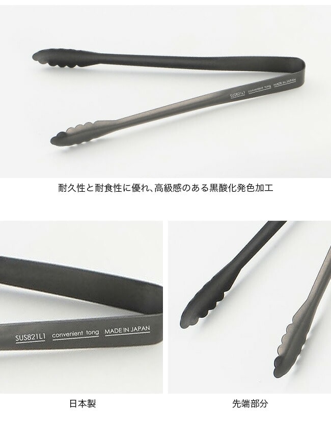 特殊鋼材(SUS821L1)を使用し、黒酸化発色加工を施したTONGSシリーズは、耐久性と耐食性に優れ、高級感のある仕上げが特徴です。