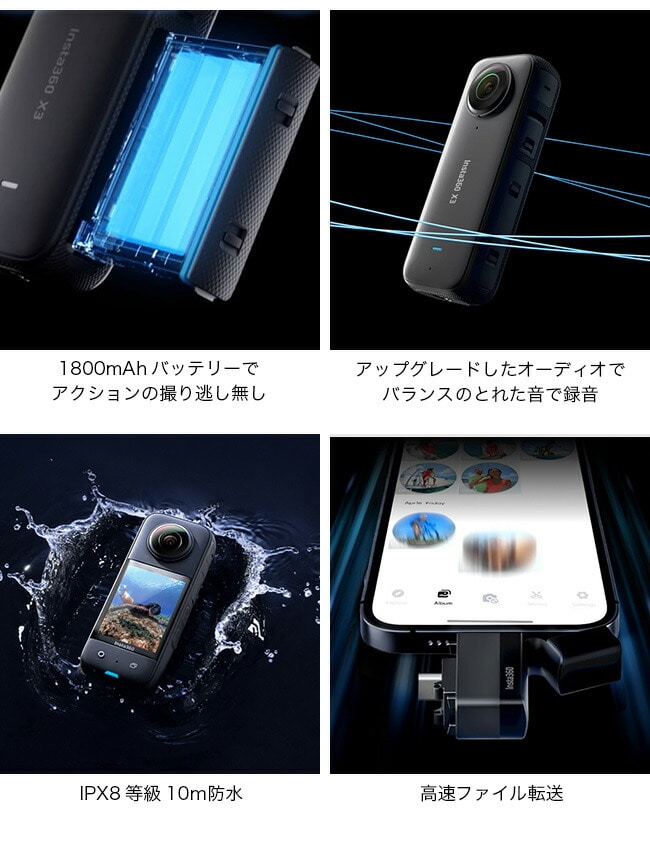 X3は鮮明な5.7K360度動画撮影でき、大切な瞬間を見逃しません。
