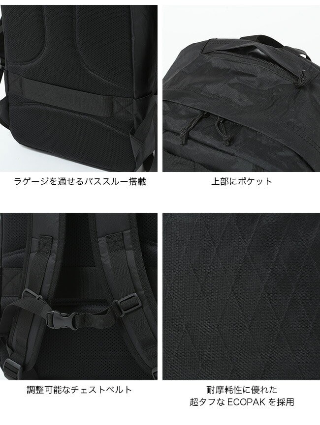 表地には引張強度、耐摩耗性に優れた超タフなX-PACを採用。防水性にも優れているので中の物が濡れることも無く快適に使用頂ける便利なDAYPACK。