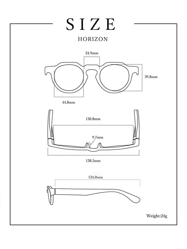 1950から60年代のフランスのヴィンテージフレームをベースに再構築したモデル。曲線と直線でデザインされるリムは、太陽が昇る水平線をイメージしています。