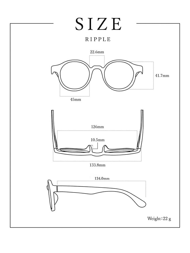 RIPPLE=さざ波という意味から、 小ぶりで顔馴染みのよいフォルムに仕上げています。