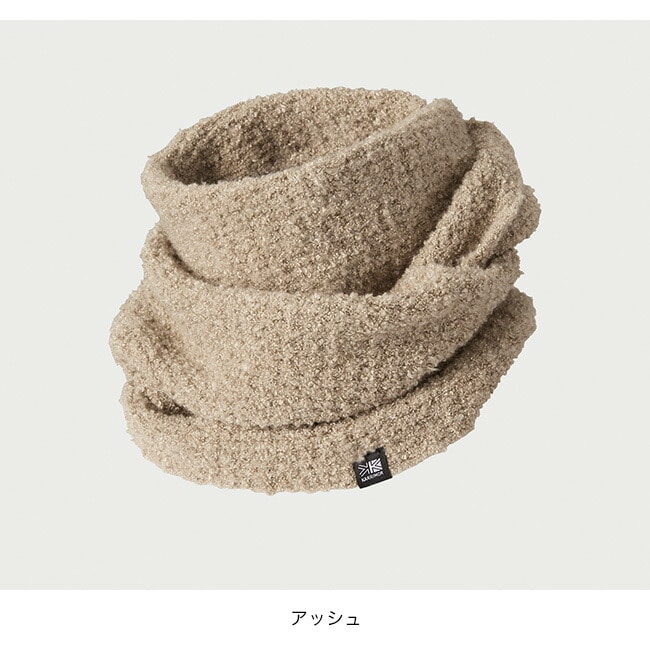肌触り良く柔らかに毛羽立たせたタム糸を使用したスヌード。