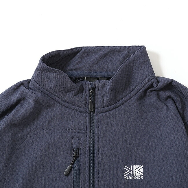 通常のポリエステル繊維に比べて約1/2という軽量性と、8本の突起による毛細管現象で素早く汗を吸水拡散する中空繊維Octa®を使用。生地構造によりデッドエアーを溜めやすく高い保温性と速乾性に優れた機能素材。