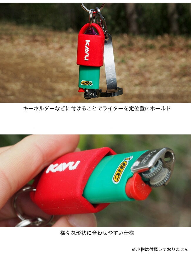 使い捨てライターの下部分に装着してキーホルダーなどに付けることができるライター用のシリコン製のケースです。CAMPの時にも見つけやすいです。