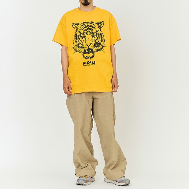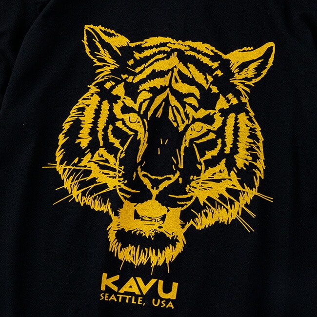 ハンドプリントシリーズのこのTシャツは、USAから取り寄せたインクを使って国内で1点1点手刷りで作成されています。力強く美しいトラを大胆にプリントした一枚。