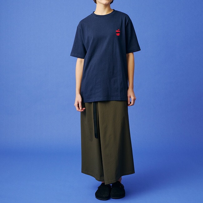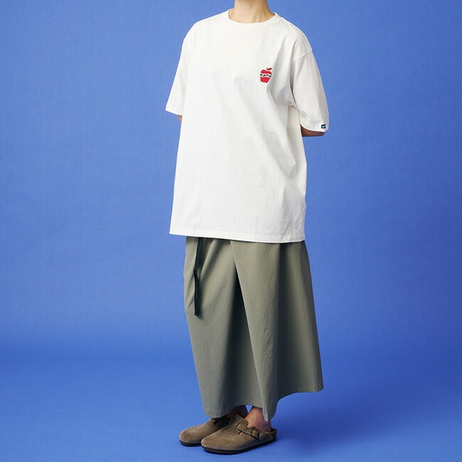 しっかりしたコットン生地でデイリーにガシガシ着られるタフさもあり、ついつい色違いで揃えたくなる、遊び心あるTシャツです。