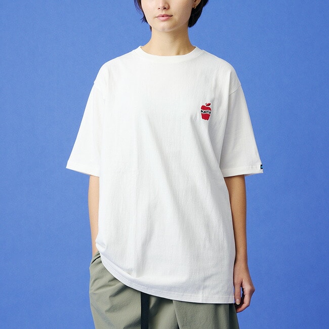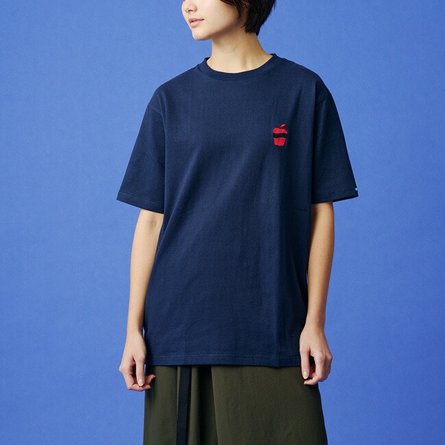胸元にちょこんと刺繍されたアップルのモチーフがなんとも愛らしい、コットン製のTシャツ