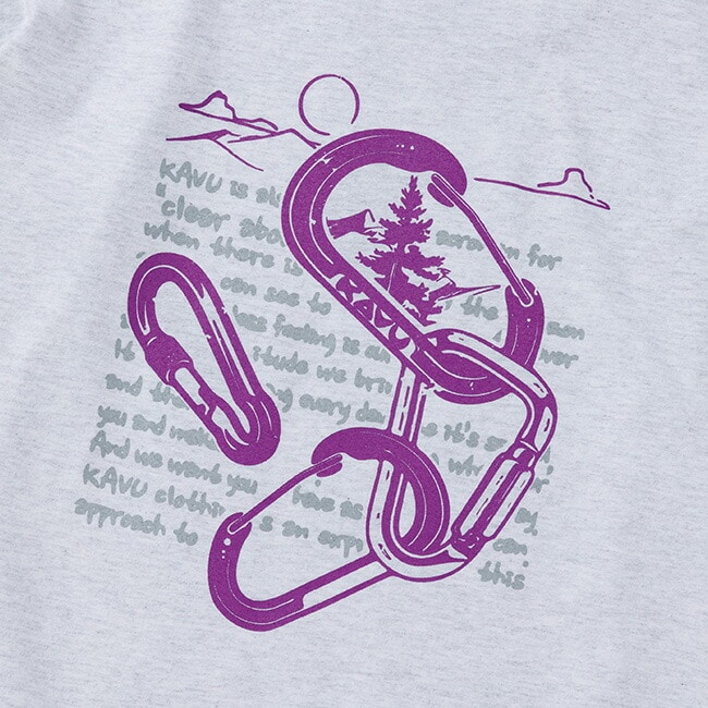 アウトドアギアでお馴染みのカラビナが描かれた、着心地の良いコットン製のTシャツ