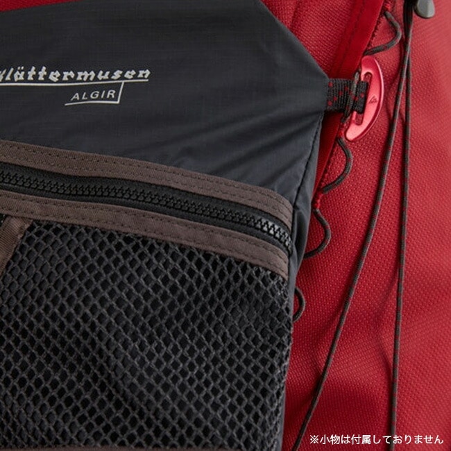 小物の収納に便利なジッパー付きメッシュポケットが外側に付属しています。