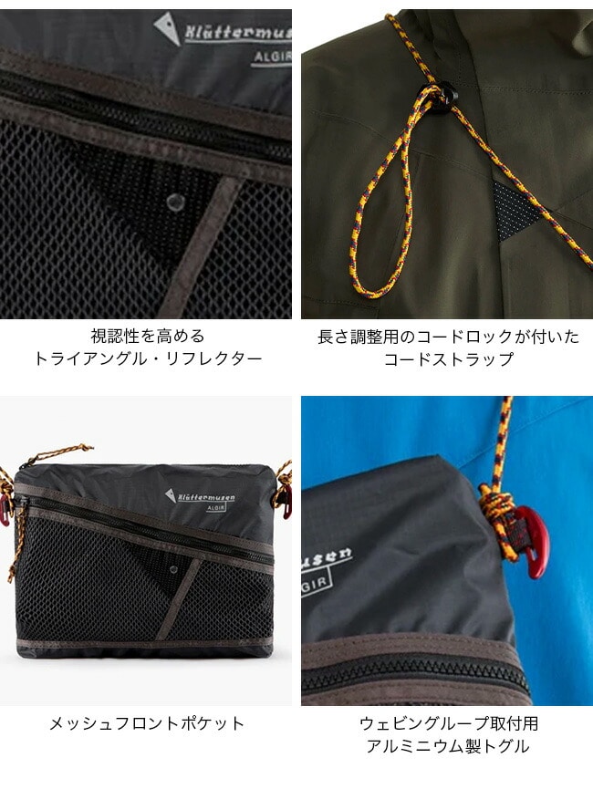 クレッタルムーセンのバックパックアクセサリは、コードストラップやトグルを利用して、バックパックのあらゆる場所に簡単に取り付けることができます。