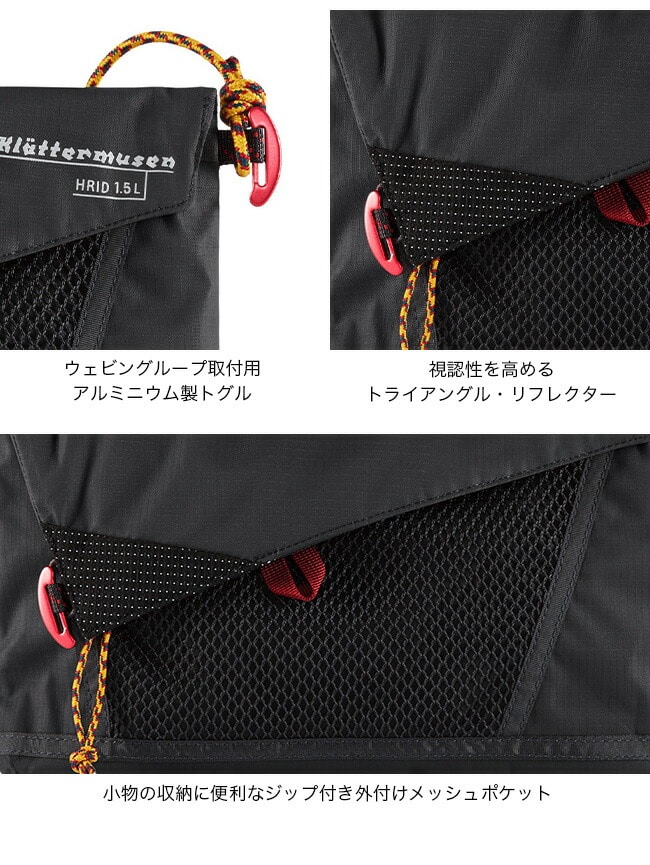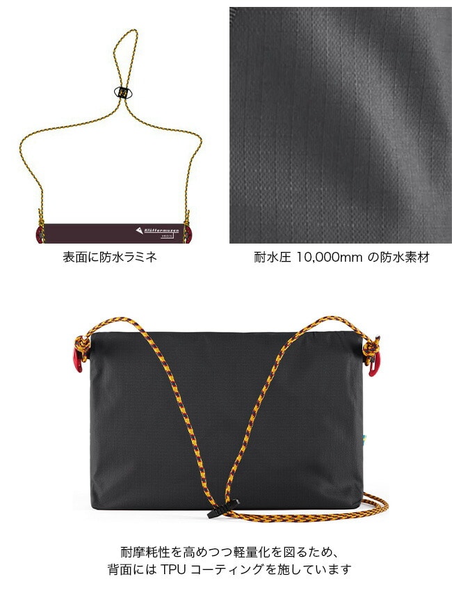 クレッタルムーセンのバックパックアクセサリは、コードストラップやトグルを利用して、バックパックのあらゆる場所に簡単に取り付けることができます。耐水圧10,000mmの防水素材に止水ファスナーとシームテープ加工を施し、大切なアイテムを守ります。