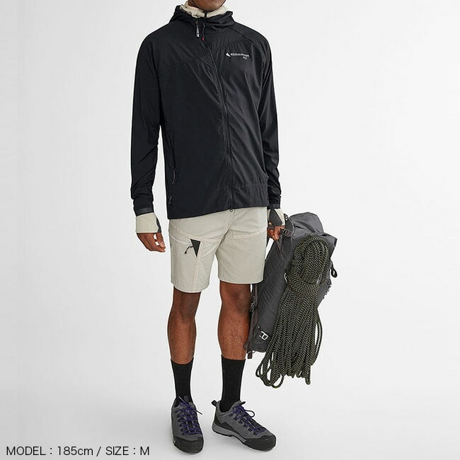 トレッキングやトレイルランニングなど、ハイパルスアクティビティに最も適しています。生地重量わずか 70g/m²のウィンドシェル素材、アクティブレヴィテンド®を採用しています。