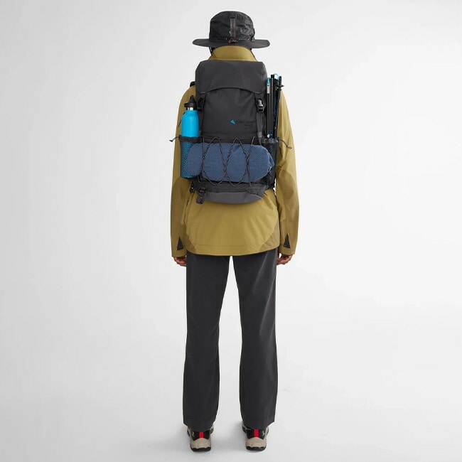 バックパックの外側には、外部のギアを簡単に取り付けられるバンジーコードが付いています。