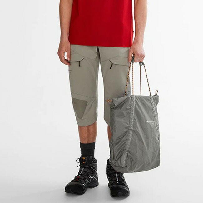 5mmのドローコードを使用したストラップとパッド入りハンドルを利用して、バッグを圧縮をしてワンショルダーでの使用も可能です。リップストップ素材は耐久性がありながら非常に軽量です。