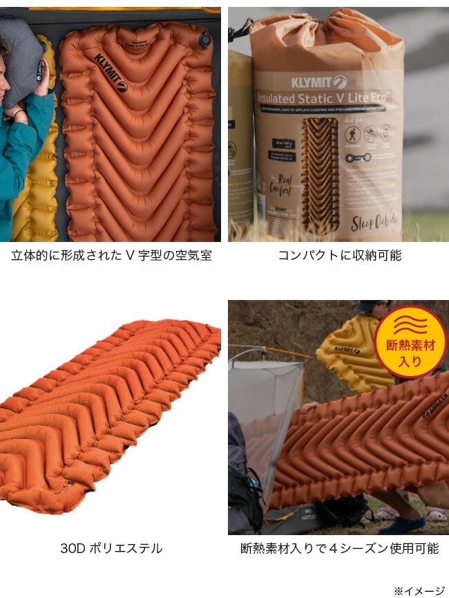 KLYMIT独自のVチェンバー構造により、寝返りで起こるマット内の空気の流動を最小限に抑え、どんなフィールドでも快適な寝心地を実現。