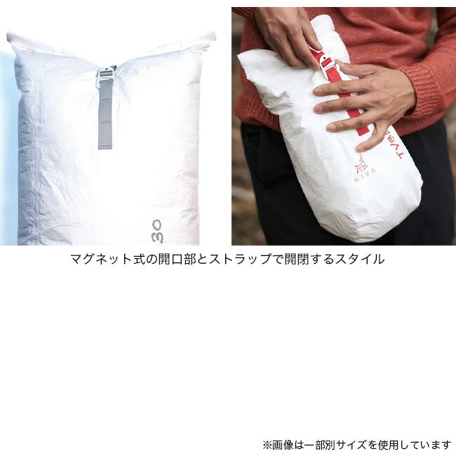フルシームテープ処理済みで高い防水性と、マグネット式の開口部とストラップで開閉するスタイルを採用しています。