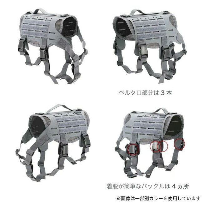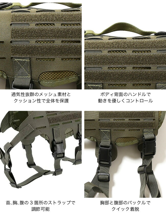 ペットのコントロールや持ち上げがしやすく、胸部と腹部のバックルで着脱簡単。
