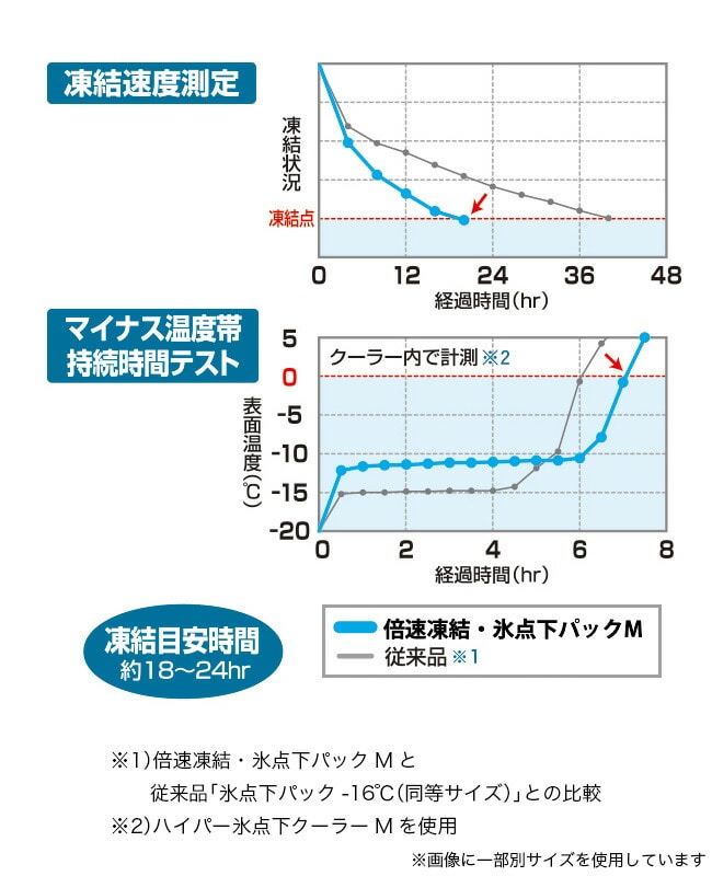 (※1)従来品:氷点下パック-16℃(※2)凍結時間について、冷凍庫の環境により表記の時間以上かかることもございます。