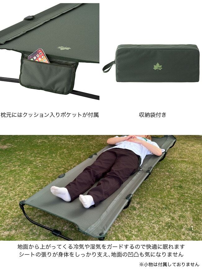 地面からの湿気を防ぎ、地面の凹凸を気にせず眠ることができ、枕元のポケットは簡易的な枕にもなって快適な寝心地。