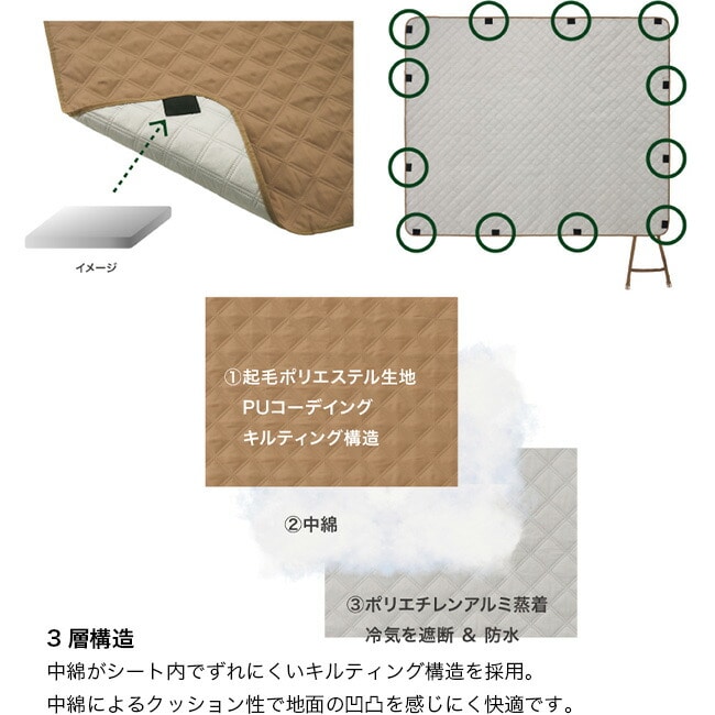 ・ウェイト入りで風に強い!冷気を伝えにくい裏面加工済レジャーシート。
