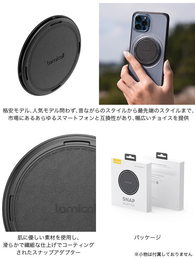 厚みと重さを最小限に抑えたスナップアダプターは、装着している事を忘れるほど、快適なスマホの操作を可能にします。