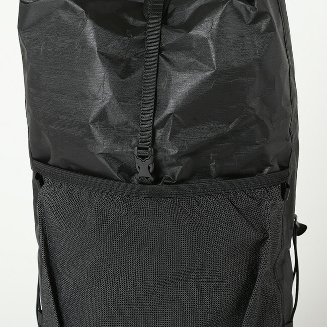 大胆な軽量化を実現するため、内部フレームをあえて設けず、UL(ウルトラライト)黎明期から広く用いられてきた、一気室構造・フロントメッシュポケット・大型のサイドポケットといった、機能を最小限に絞ったオーソドックスなスタイルを踏襲しています。構造自体は非常にシンプルですが、その分、パック全体のバランスや細かな仕様が背負い心地に大きく影響します。