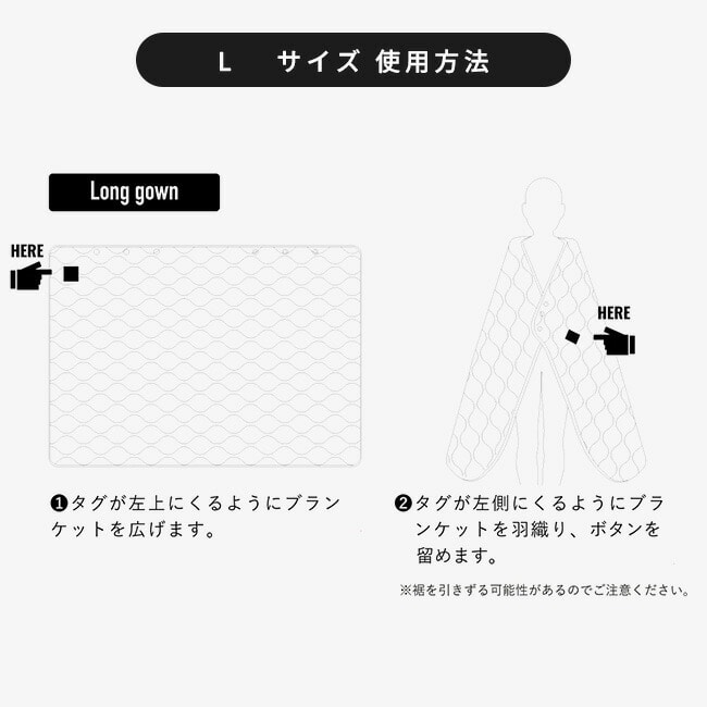 男性が寝てもしっかり足元までくるまれるゆったりとした大きさで、ガウンとしてもお使いいただけます。